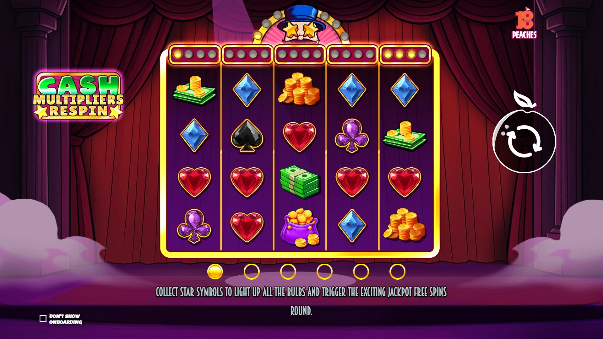 Welcome to Cash Multipliers Respin; a cabaret-themed online slot created by 18Peaches that features 15-paylines across a 5x4 reel grid. With an RTP of 95.92%, this medium-volatility casino game is designed to appeal to players of all experience levels, so be sure to give our Cash Multipliers Respin demo a try up above or continue reading below to see what this game is all about.