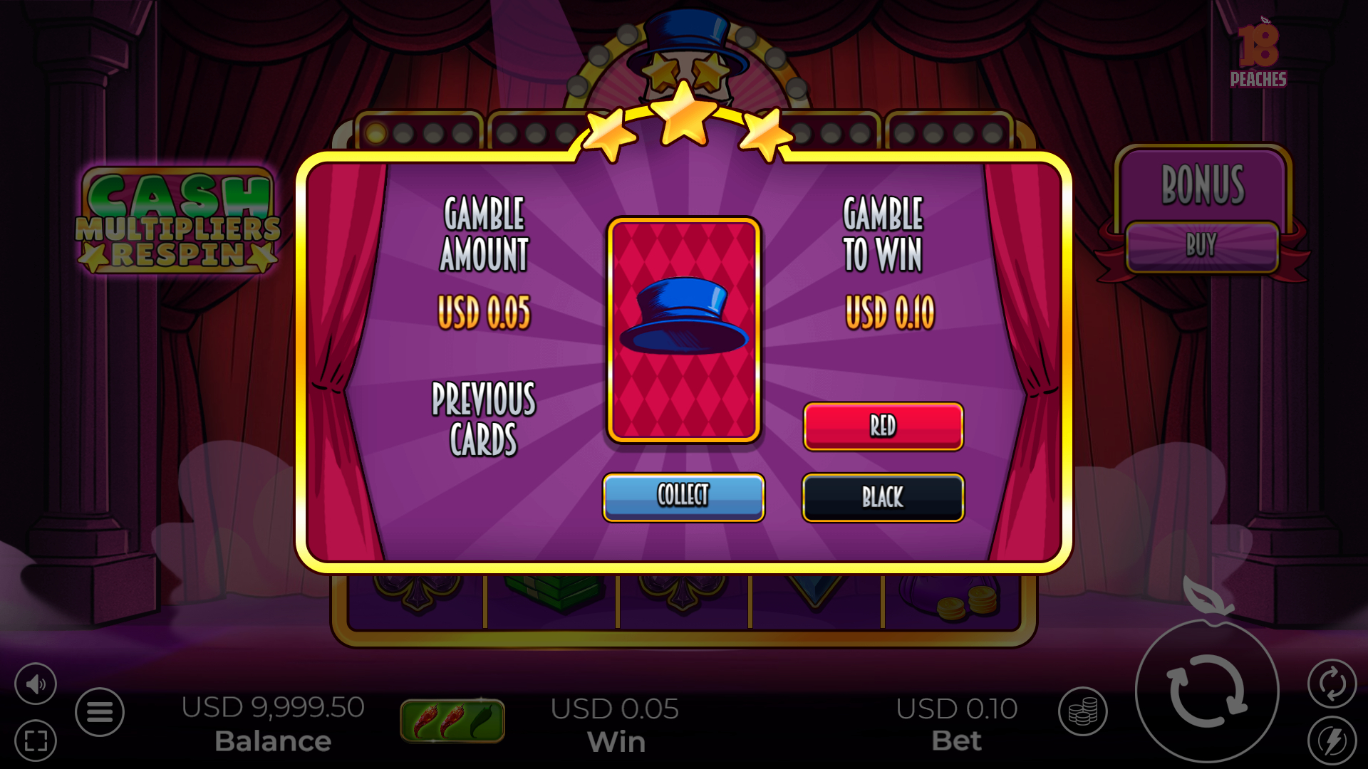 As is the case with many slots these days, Cash Multipliers Respin is equipped with a gamble feature, which allows you to boost your winnings by selecting either red or black. If you get it right, you can double your winnings, but you’ll forfeit your winnings if you get it wrong. If you’re feeling lucky, you can gamble your winnings up to two times.
