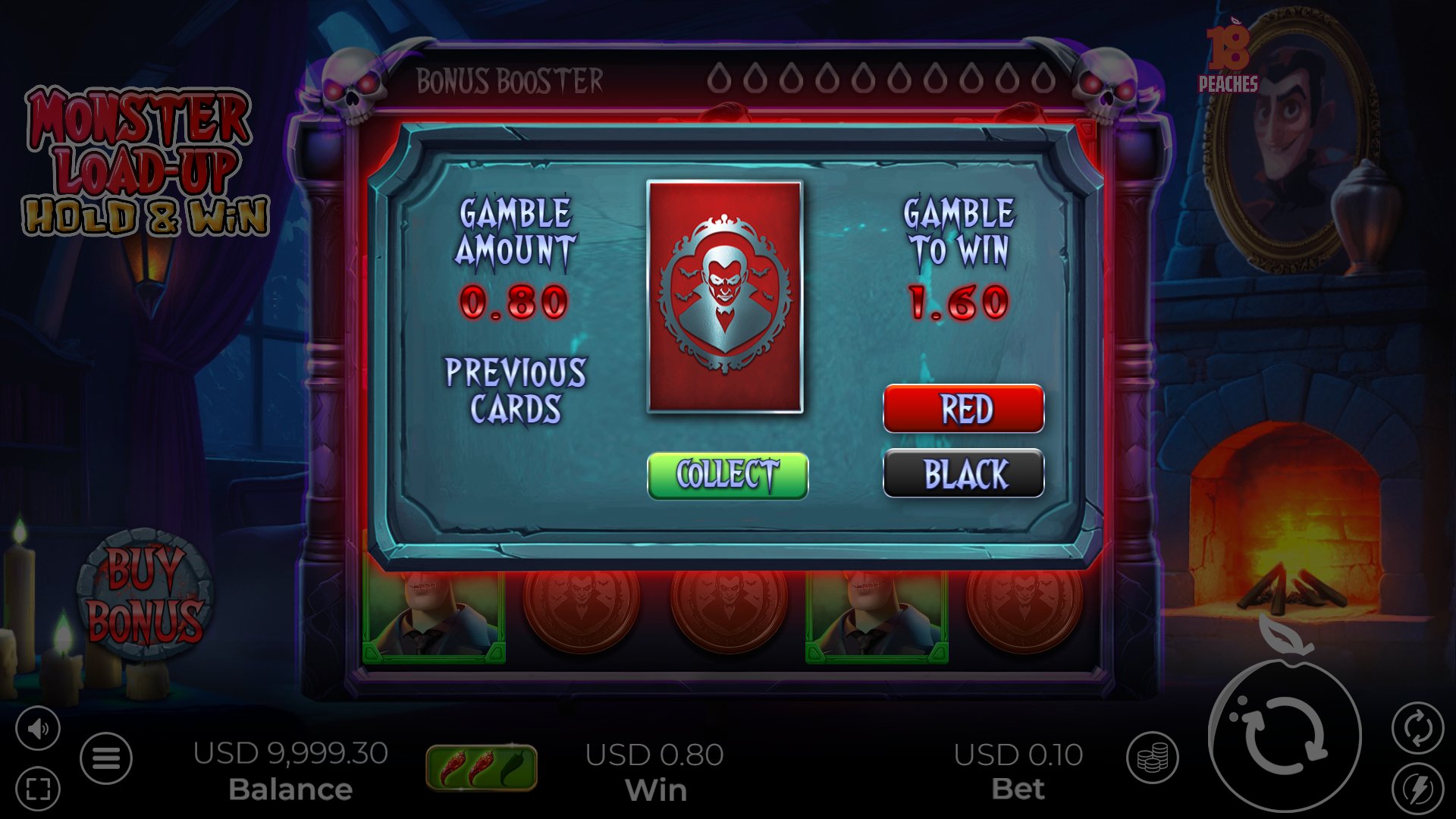 The last feature worth noting about Monster Load-Up Hold & Win is the gamble feature. With this feature, after any winning spin, you can choose to risk your winnings in exchange for bigger winnings by correctly guessing whether the card shown will be red or black. You can do this up to 2-times, but be careful because you’ll forfeit your winnings if you guess incorrectly.